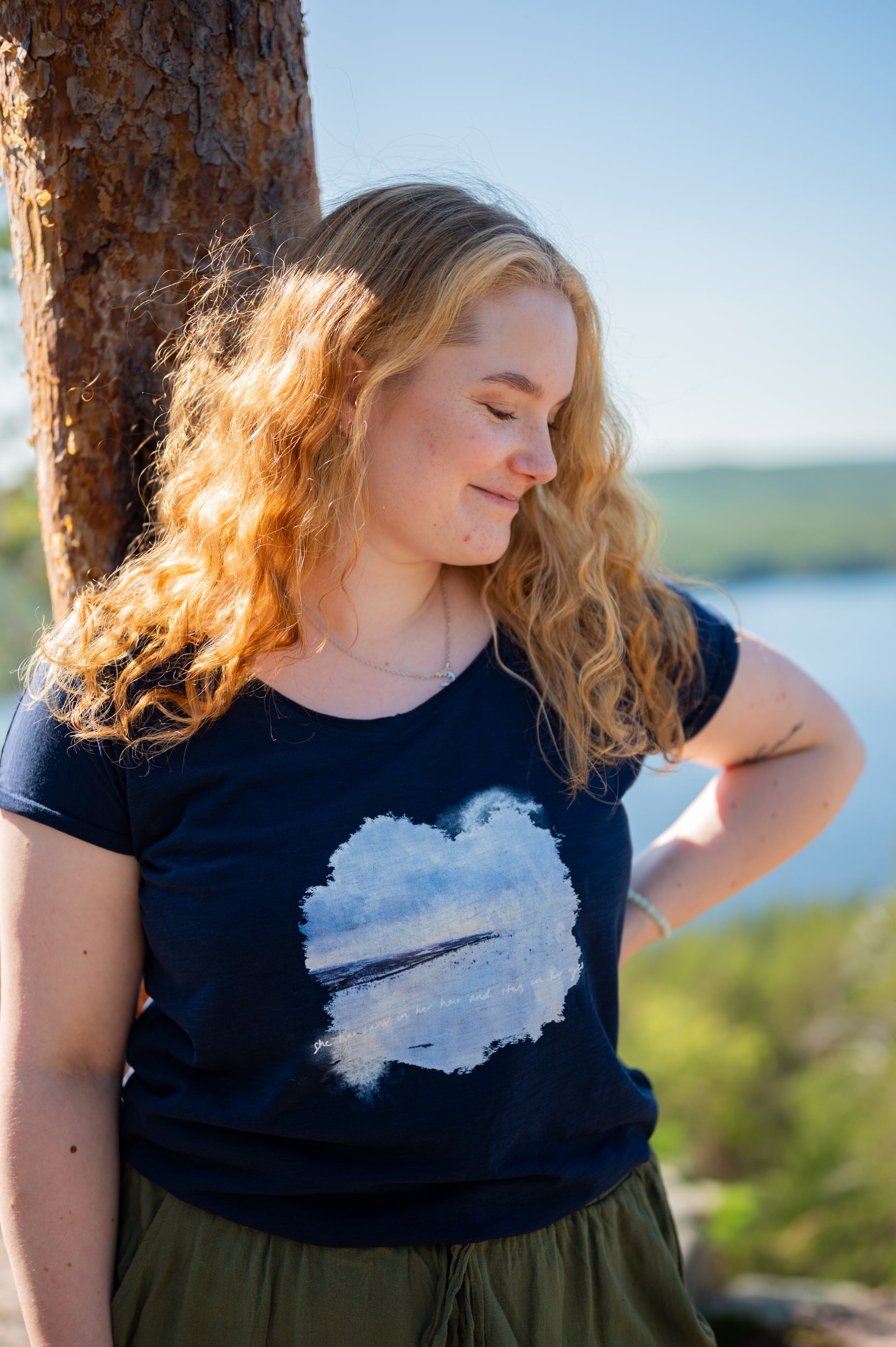 "She has frost in her hair and starts in her eyes"